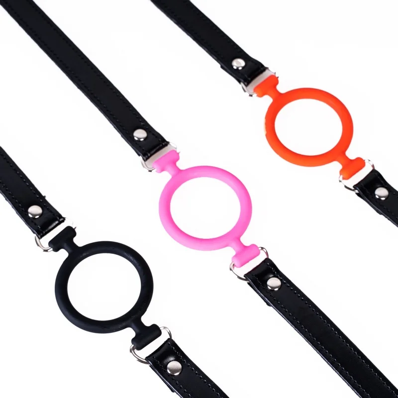 Adjustable Silicone Open Mouth Penis Ring Leather Harness Mask Gags for Couple Delay Ejaculation Lasting Cock Sex Toys