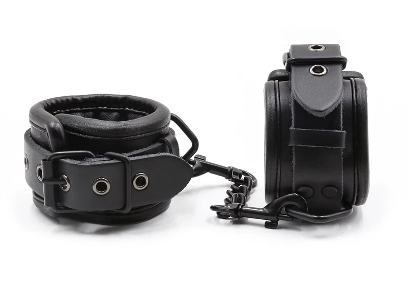 Black Genuine Leather Bdsm Bondage Set 3pcs Restraints Collars Ankle Cuff Handcuffs For Sex Bondage Set Sex Toys For Adults