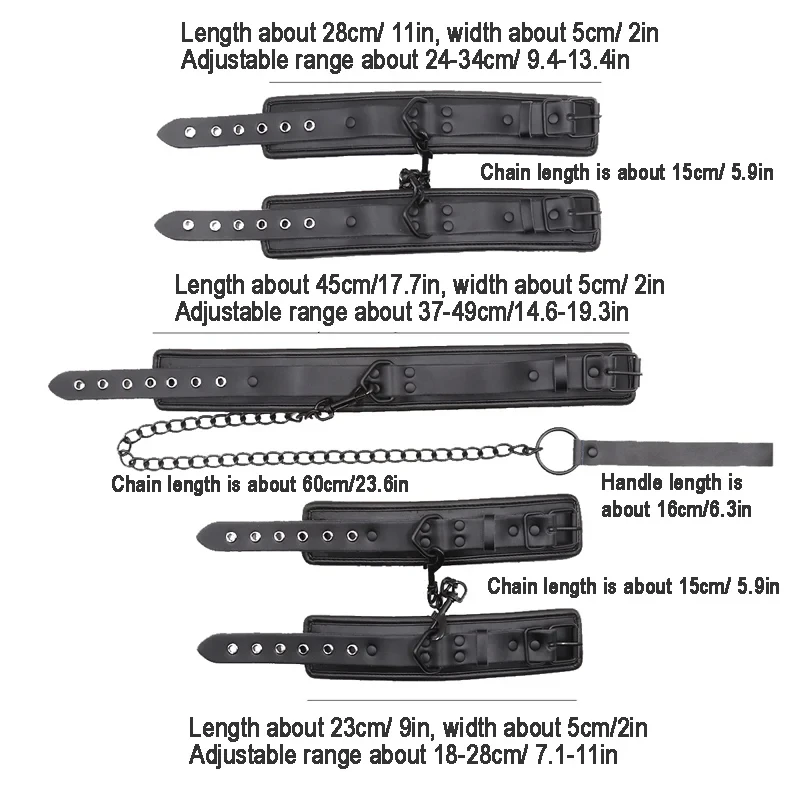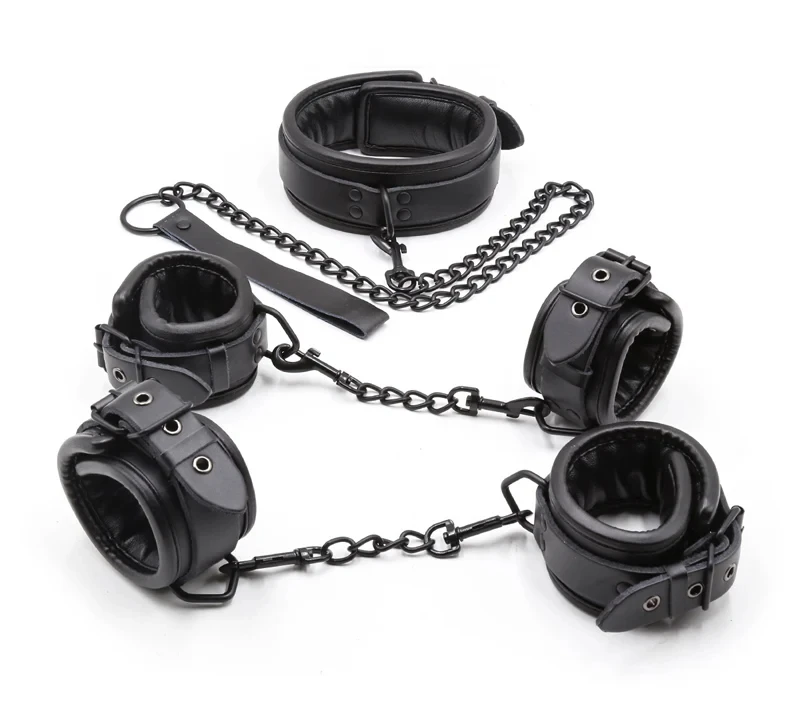 BDSM Bondage Restraint Set Couples Sex Toy 3PCS Neck to Wrist Restraint Kit with Adjustable Handcuff Collar Traction Chain