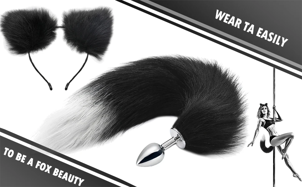 Sex Anal Butt Plug with Faux Fox Tail and Ear-Anal Stopper Tail Adult Sex toys for couples SM Games Cosplay Stainless Steel